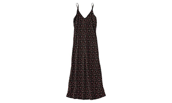オトナにも推したい花柄キャミワンピ♡黒字なので赤い花柄でも可愛さがトゥーマッチにならないキャミワンピ。華奢なヒモも高ポイント。