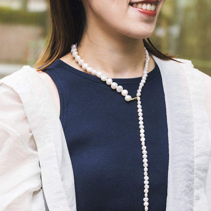 カジュアル化が進む夏こそ頼りになるのが、パールネックレス。かしこまらず、気負わず使えるデザインも増えています。今回は、個性派パール使いが素敵なママたちをチェックします!