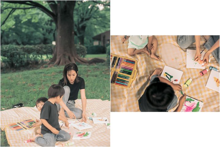 晴れた日はシートを広げ 思いっきりお絵かきを楽しみます