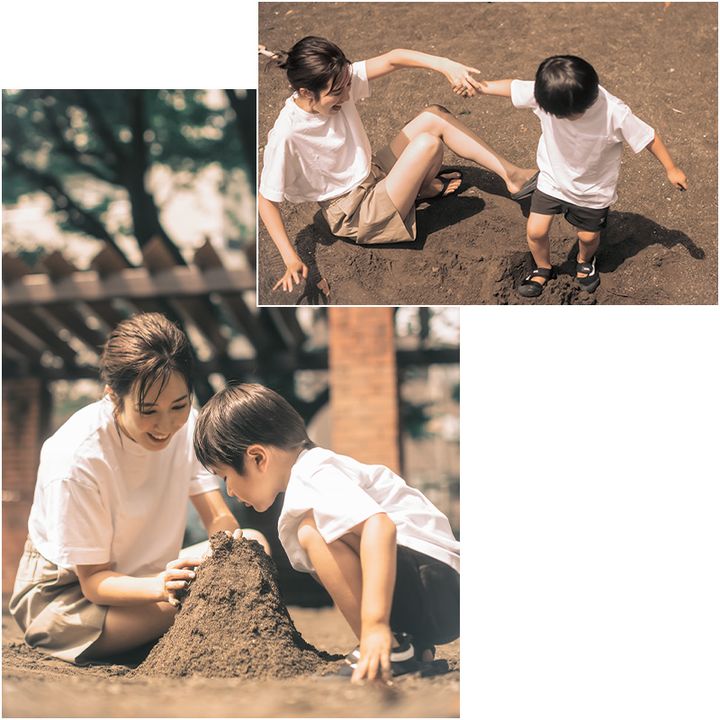 2人目を出産後、幼い2人育児に奮闘し、自分は大変だと思いこみ、理想とは違う2人育児に涙した日もありました。公園でもベンチに座って「早く終わらないかな…」と時間ばかり気にしていた自分に嫌気がさし、それ以降汚れ覚悟で一緒になって遊ぶ方向にシフト。同じ時間を共有できると汚れも時間も気にならず、気持ちがスーッと楽になっていきました。息子と泥まみれになっての帰り道は決して人に見せられたものではないけれど、こんな私も嫌いじゃない。息子が巣立ったときにこの光景を懐かしく愛おしく思うのだろうと今しかないこの瞬間を目一杯楽しんでいます。