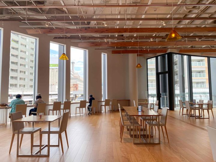 隈研吾さんが手がけた建築の中にあるカフェだけあって、開放的でおしゃれな空間が広がっていて、感動しますよ!小馬 キラリ店を初めて利用するなら、窓際席を利用してみてほしいです。なぜなら、天気のいい日には、窓の外に立山連峰が望めるから
