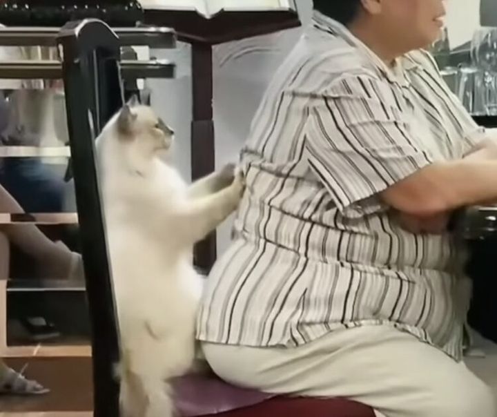 3. 「気にしニャいで食事して」椅子に一緒に座りたがる猫さんの目的は?