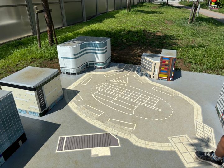 ガメラの周りには柵があり、触ることはできませんが、目の前にミニチュアの街が再現させていて、画像のように映画の中に入ったような写真が撮れます!