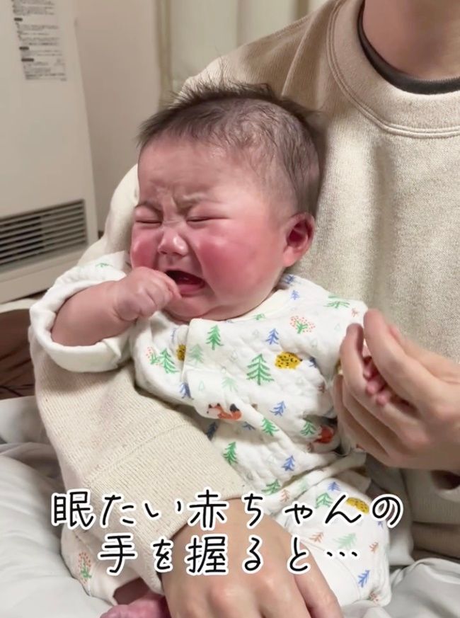 とある方法で、すぐに寝てしまうかわいいい赤ちゃんをご紹介!生後4カ月の赤ちゃんが、眠たくてぐずっていると……?