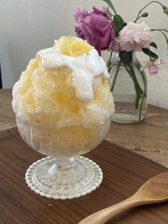 今は終わってしまいましたが、バラが咲き誇っていた頃いただいたかき氷「柑橘ミックス、チリクリームチーズ」