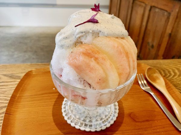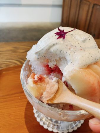 桃の味が活きていて、とてもジューシーな贅沢なかき氷。