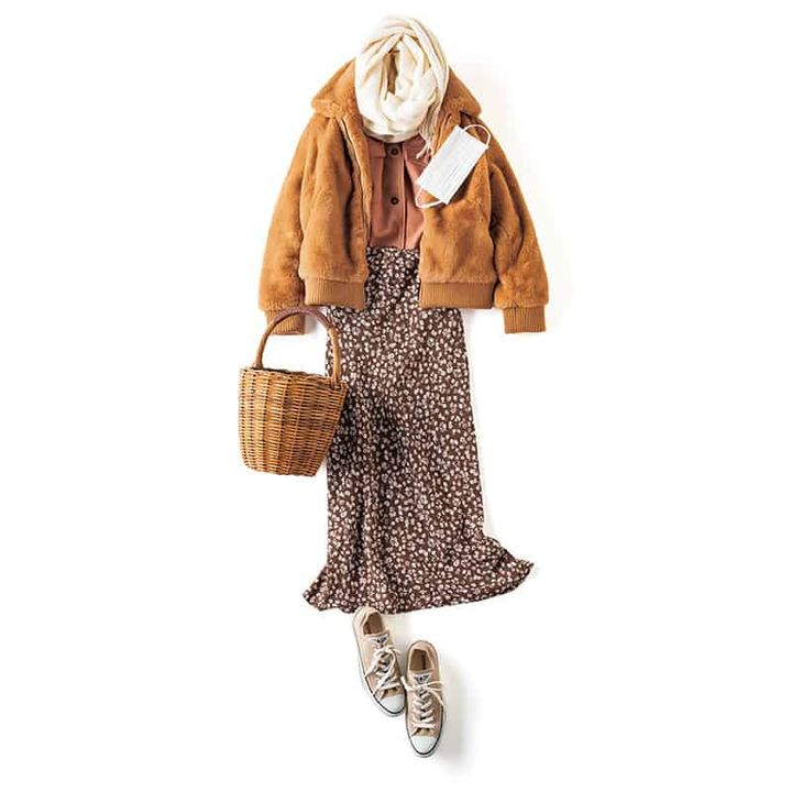 軽やかで動きの出る小花柄スカート。一枚あると着こなしの幅もぐんと広がる。¥16,000(FRAY I.D/FRAY I.D ルミネ新宿2店)