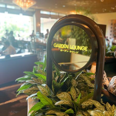 ガーデンラウンジからは、美しい日本庭園を臨むことができます。 大きな窓からは、赤い橋や、滝、涼し気に泳ぐ鯉まで見えて、思わず声が出てしまうほど綺麗でした。