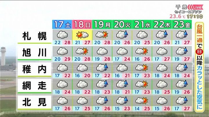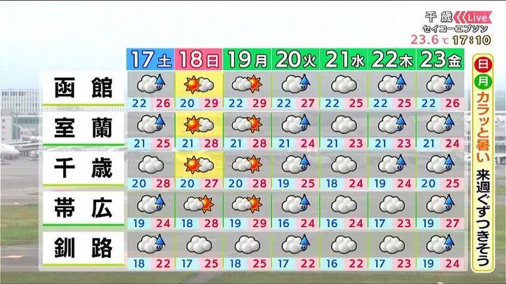 3. 【厳しい蒸し暑さ・寝苦しさから少し解放されそう】北海道の週間天気予報 17日(土)から/気象予報士執筆