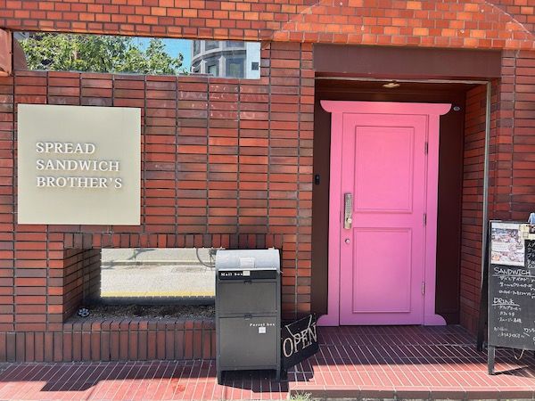 小学生なら、いや、かつて小学生だった人ならみんなワクワクしちゃう、どこでもドアみたいな扉! 看板にはSPREAD SANDWICH BROTHER'S って書いてあります。サンドウィッチ屋さんかな?