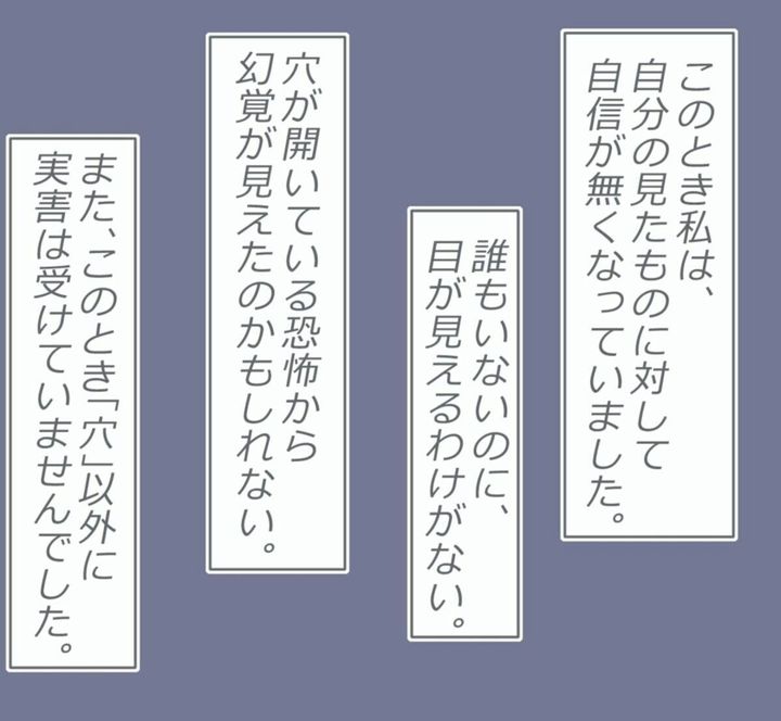 結局、警察に相談はできなかったというちなきちさん。もしかしたら、あの目は気のせいだったのではないかと、自分に起きたできごとが信じられなくなってしまったようです。