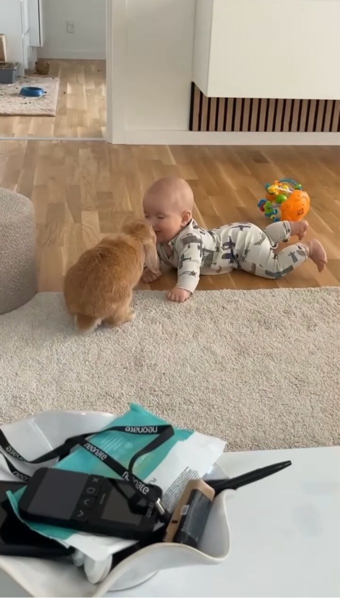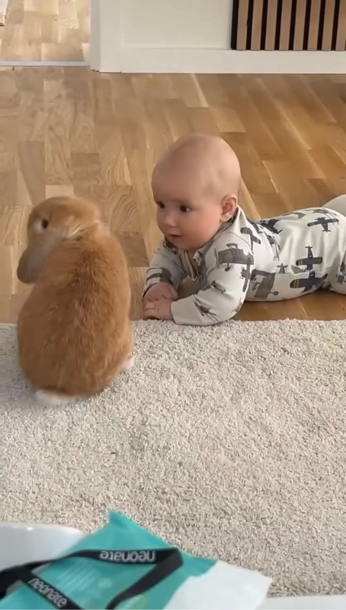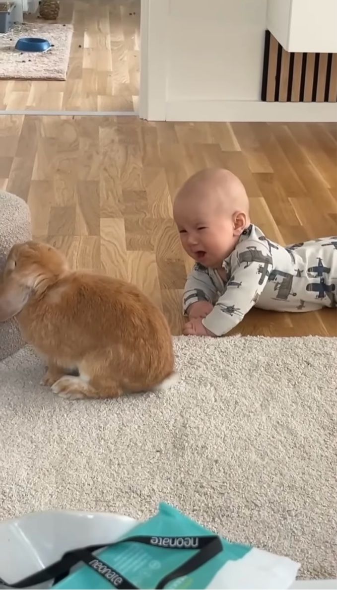 やさしく頭をこっつんこ。ウサギと赤ちゃんの微笑ましいやり取りが話題!【海外・動画】