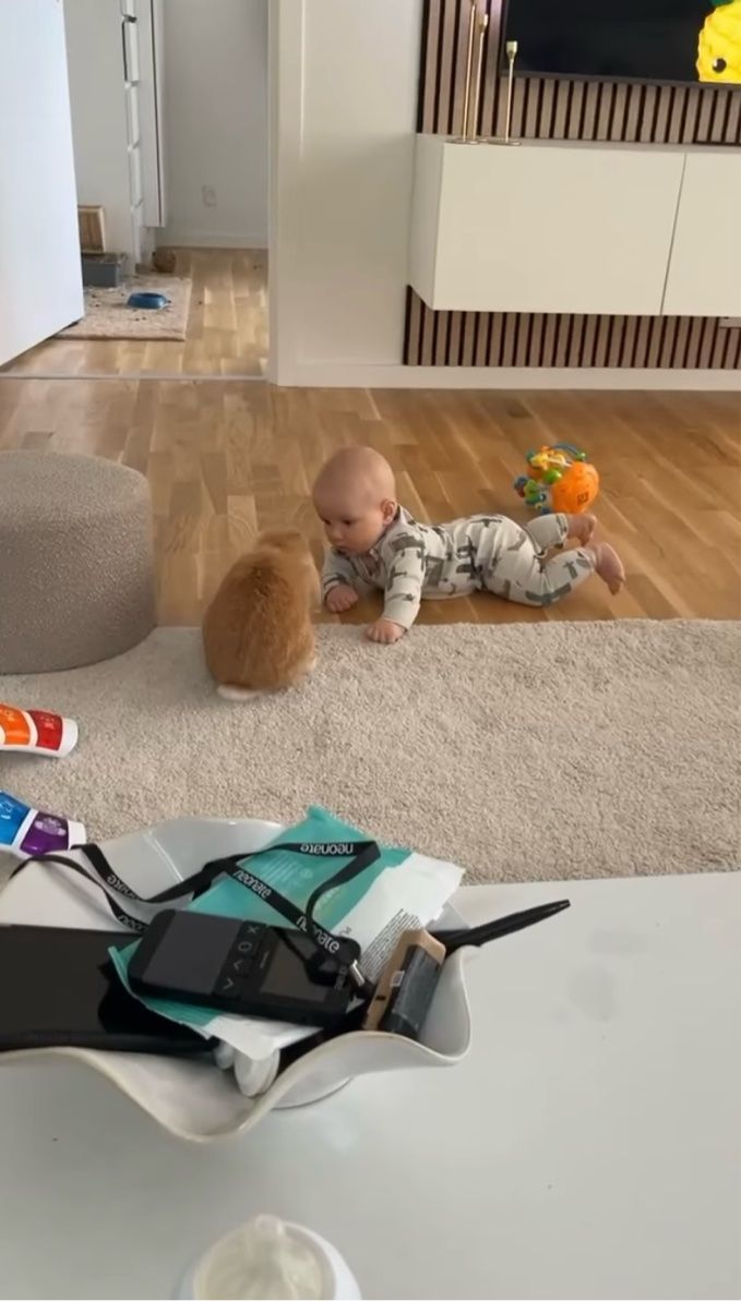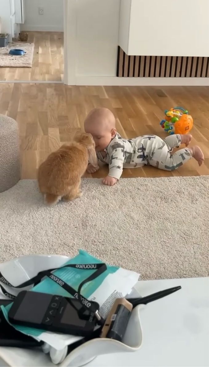 デンマークのとあるお宅で撮影された今回の動画には、ウサギと赤ちゃんのほっこりするやり取りが収められていました。
