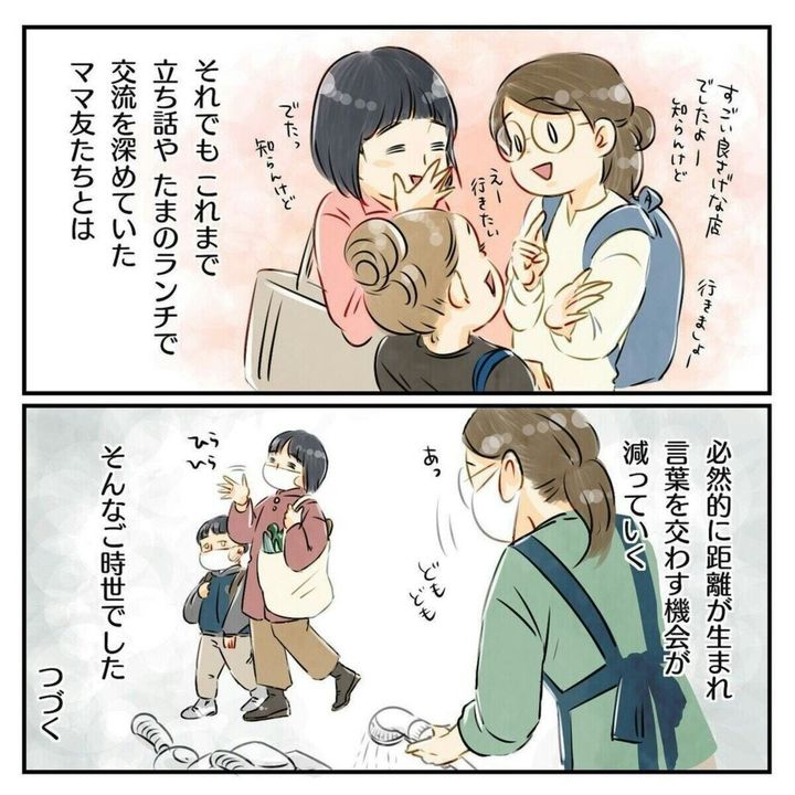 時期は新型コロナ感染症の患者が増えはじめたころ。恒例イベントが延期や中止になりはじめ、少しずつ日々の生活に影響がでて、それぞれ不安な思いを抱きましたよね、ママ友との集まりや、子どもの遊び方に変化があった人もいるでしょう。