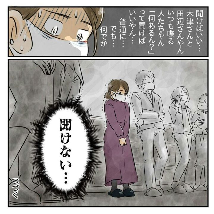 ママ友たちに距離を感じた星田さんは「何があるの?」と聞きに行くこともできず、自分は誘われていないし無視されているかも…という不安に襲われてしまったようです。