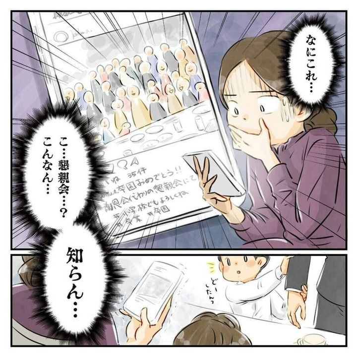 今まで、ママ友たちと仲良く過ごしていたと思っていた星田つまみさん。それだけに、卒園式後に自分の知らないところで懇親会が開催されていると知ったときは、とてもショックを受けたようです。後日、懇親会の案内のお手紙を読んでいなかっただけだとわかったそうですが、この日はドキドキして不安が止まらなかったでしょうね。