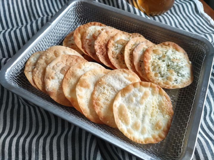 そのまま食べるのもおいしいですが、パリパリ割ってサラダにトッピングしたり、トルティーヤチップスのようにソースをディップして食べるのもおすすめ。おやつにもおつまみにもなります。