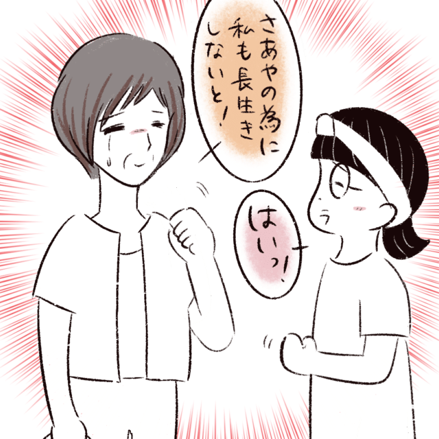 「さあやの為に私も長生きしないと!」と力強く話すおばあちゃんに「はいっ!」と頷くまるさん。