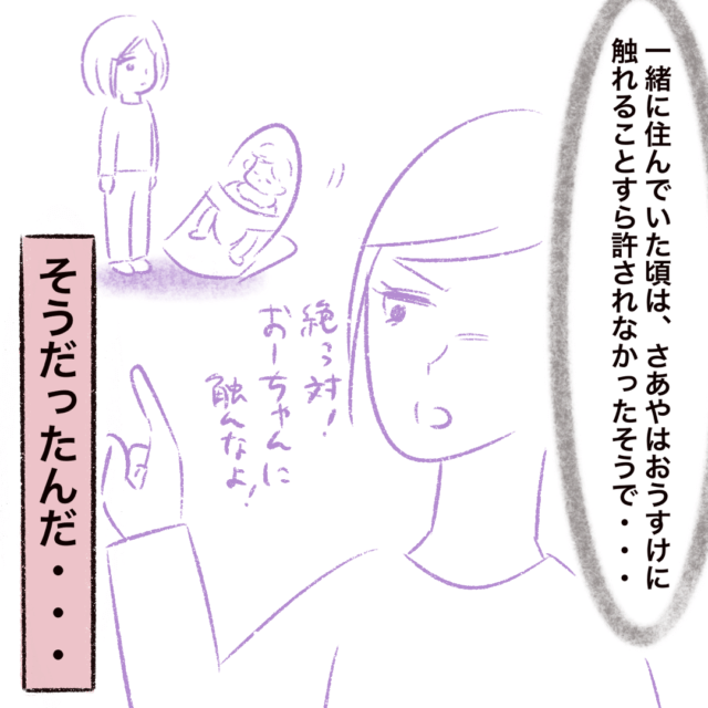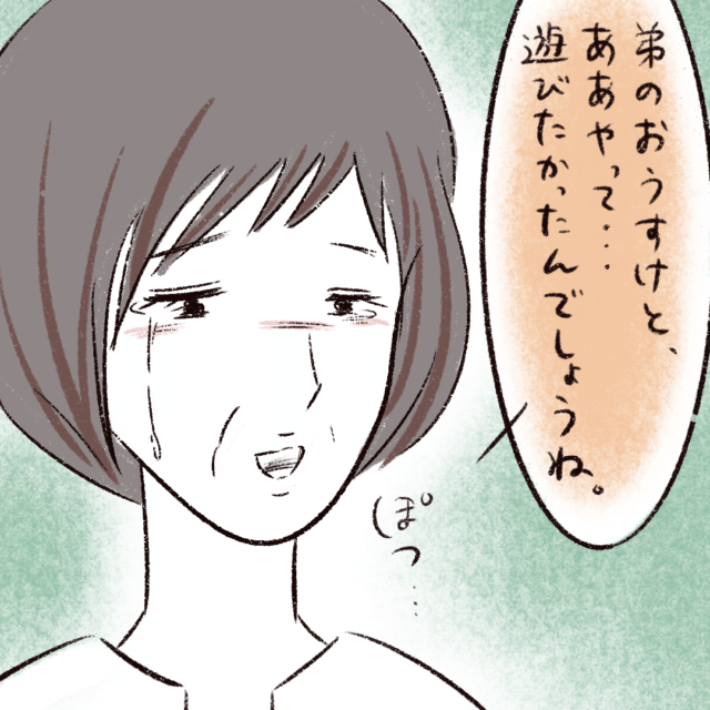 「本当は・・・弟のおうすけと、ああやって・・・遊びたかったんでしょうね」アキくんと遊ぶさあやちゃんを見ながら涙を浮かべるおばあちゃん。