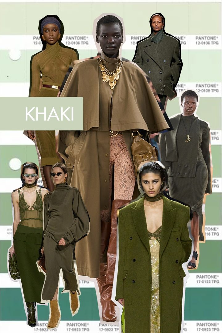バーバリーBURBERRY)、フェラガモ(FERRAGAMO)グッチGUCCI)、ボッテガ・ヴェネタBOTTEGA VENETA)では、リッチでアーシーなカーキグリーンの色合いが台頭。カーキといえばユーティリティジャケットやカーゴパンツのイメージが強いかもしれないが、この秋はミリタリーウェアよりもエレガントで洗練されており、オリーブ、モス、ディープカーキなどに染まったピーコート、シルクドレス、シアーなアイテムが見られた。ロンドンファッション・ウィーク後に発表されたPANTONE®のカラー・トレンド・レポートでは、「イグアナ」をトップカラーのひとつとして取り上げ、「自然への感謝を示し、万能で樹木のようなグリーン」と表現している。