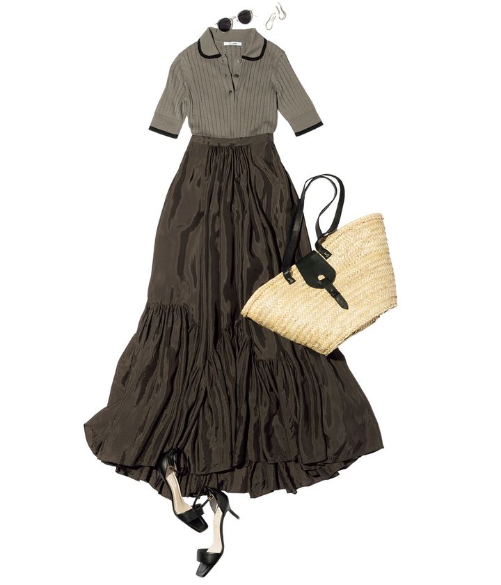 まだまだ暑い日が続くけれど、そろそろオシャレがいちばん楽しめる秋コーデを考えはじめても。スカートは思いきりロング丈を選ぶとグッと大人に。合わせはシンプルなクルーネックでなく、ハンサムなポロニットが新相棒としてオススメです。