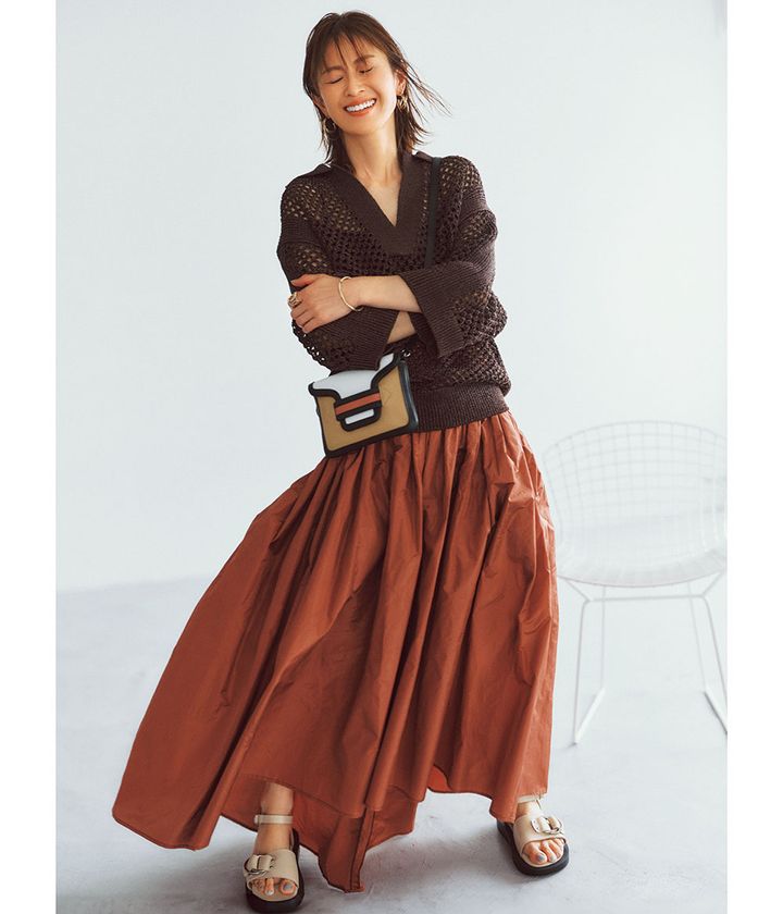 40代の秋ニットは半袖&メッシュからはじめよう【スカートコーデ2選】