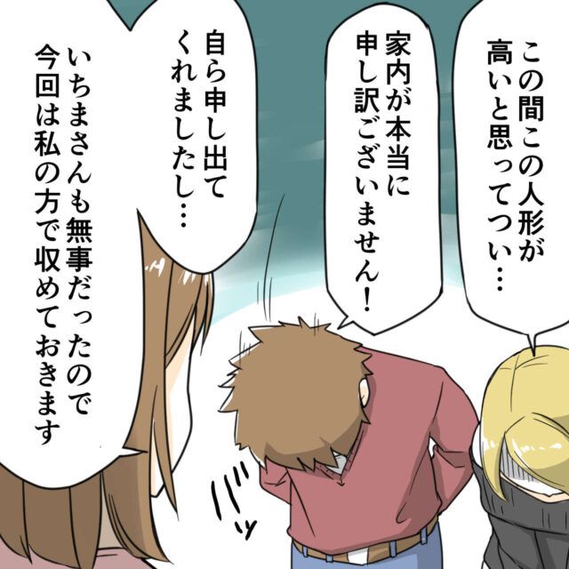 「この間この人形が高いと思ってつい・・・」と頭を下げる山本さん。