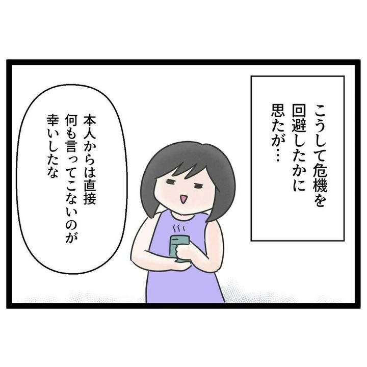 家族とのつながりを大切にするオーストラリアの文化を理解しつつも、義母とのやり取りを負担に感じるサマ子さんは距離感に悩んでいました。そんなとき、義母のスマホがアカウント乗っ取りの被害に遭い、義母はSNSをやめることになります。結果、サマ子さんの悩みは解消に向かったのでした。