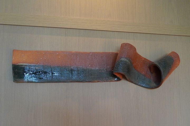 壁のオブジェは三井家が保有する茶碗をモチーフに展開したもの。文化の継承を感じます。