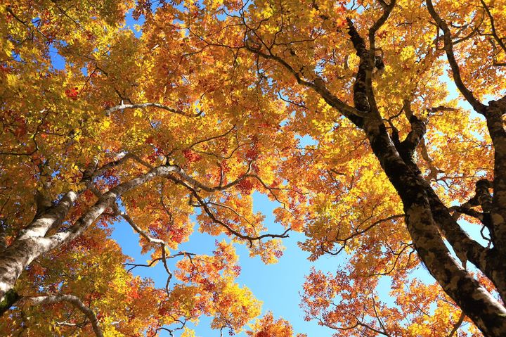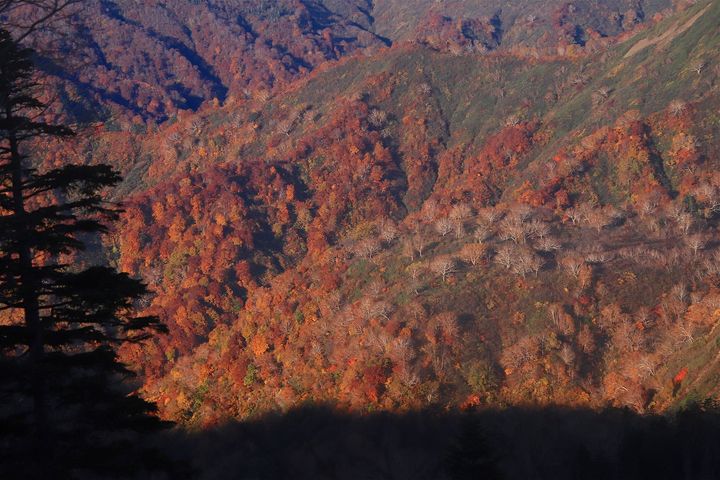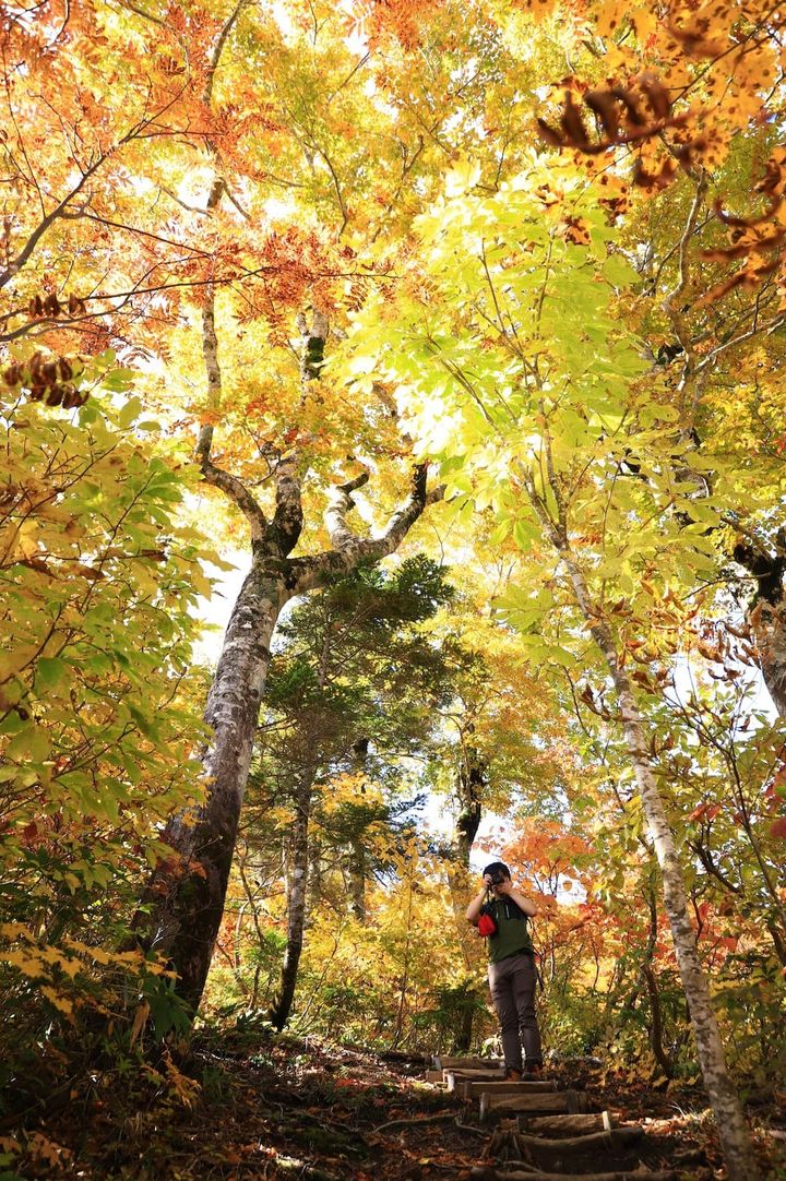 山の選定としては、ブナやミズナラの原生林をもつ山を選ぶと良いでしょう。高山帯とはまた違った、一面オレンジ色に包まれる絵画のような森の風景を楽しむことができます。