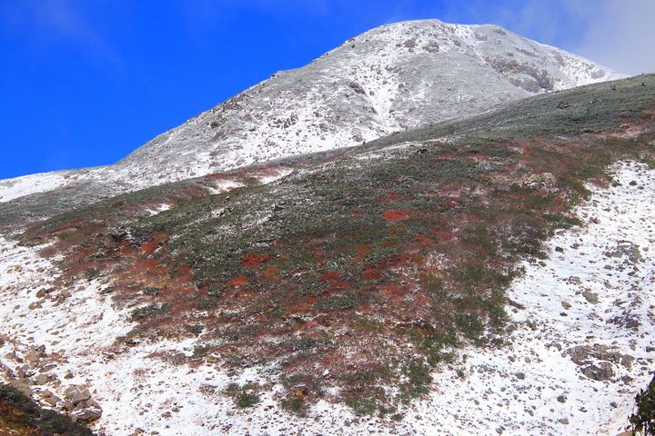 言葉では表現し尽くせないほど美しい紅葉を楽しむことができる山として、多くの登山者に人気があります。2021年10月、筆者が火打山を訪れたとき、運よく初冠雪のタイミングと重なりました。