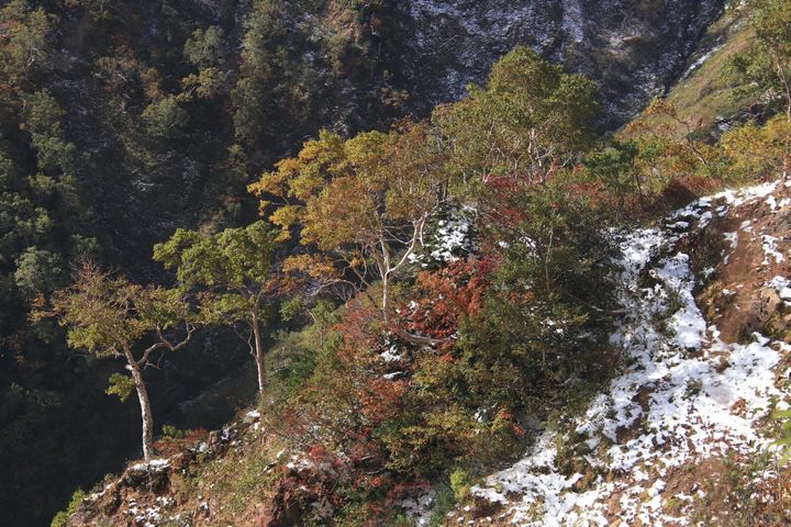 秋と冬が同時に存在するこの特別な風景に感動し、刹那の野外ギャラリーのごとき登山道を進んだ経験は、忘れられない思い出となりました。