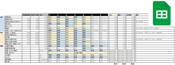 時間を可視化して夫婦で折半! 家計管理や保活情報まで「Googleスプレッドシート」に一元化。