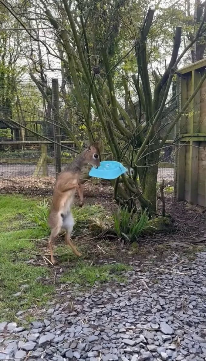 3. バードフィーダーからごはんを失敬したディクディク。ところがコントのようなオチが!【海外・動画】