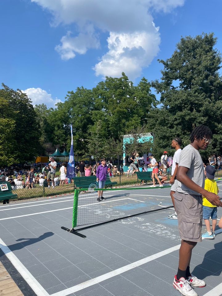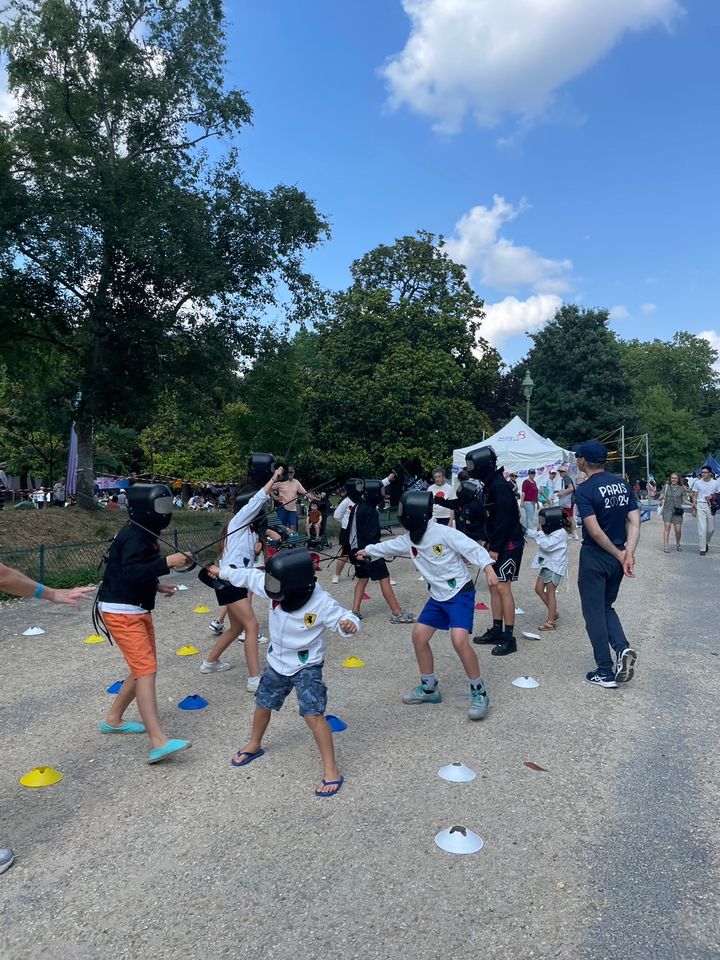 そして、街中にも無料で楽しめる子どもがスポーツに触れられる取り組みがたくさん。8区にあるモンソー公園を歩いていると、テニスやフェンシングが体験できるコーナーを発見しました。