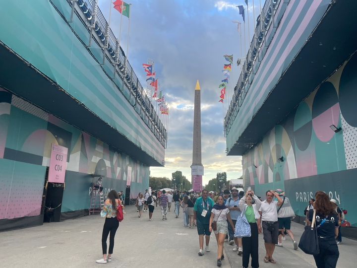 そのほか、先端がゴールドのコンセプチュアルな塔が中央にそびえ立つコンコルド広場にはアーバンスポーツが集まっていて、スケートボードやBMX、ブレイキンなどの次世代スポーツを観戦する場に様変わりしていました。