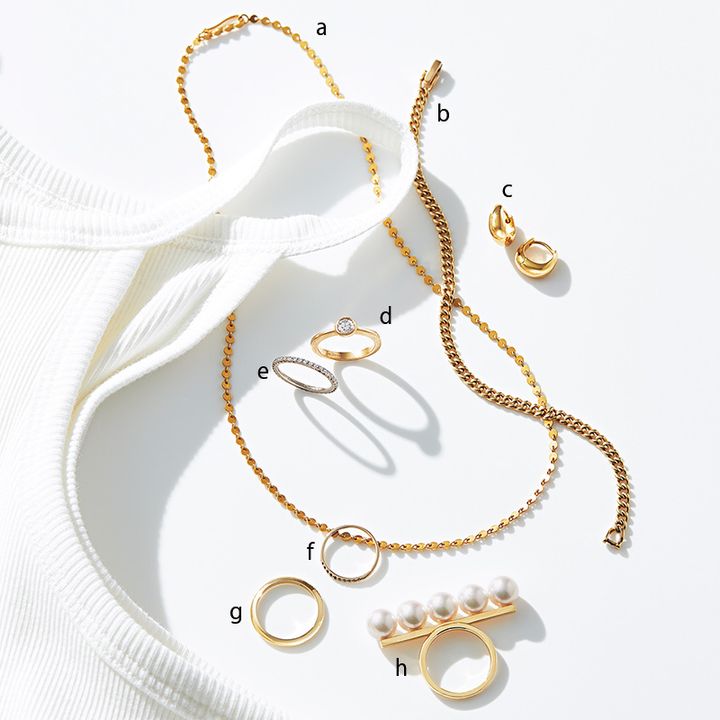 地金ジュエリーで緩急をつけた 技ありレイヤードが女っぽい