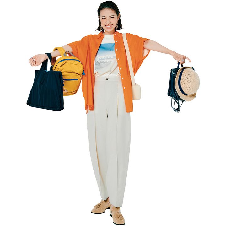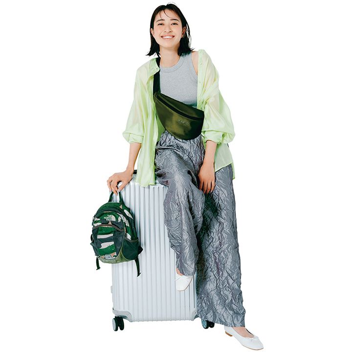 シャツ¥5,500(オペーク ドット クリップ)タンクトップ¥9,350(サードマガジン)パンツ¥19,800(メゾンスペシャル/メゾンスペシャル 青山店)ボディバッグ¥26,400(ヴァジック/ヴァジックジャパン)イヤカフ¥24,200(ブランイリス/ブランイリス トーキョー)シューズ¥15,400(ダイアナ/ダイアナ 銀座本店)その他/スタイリスト私物