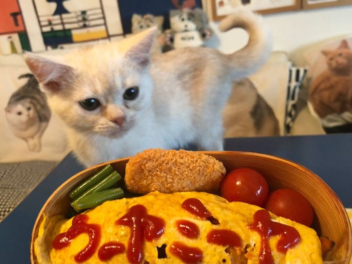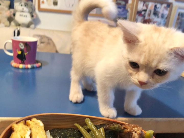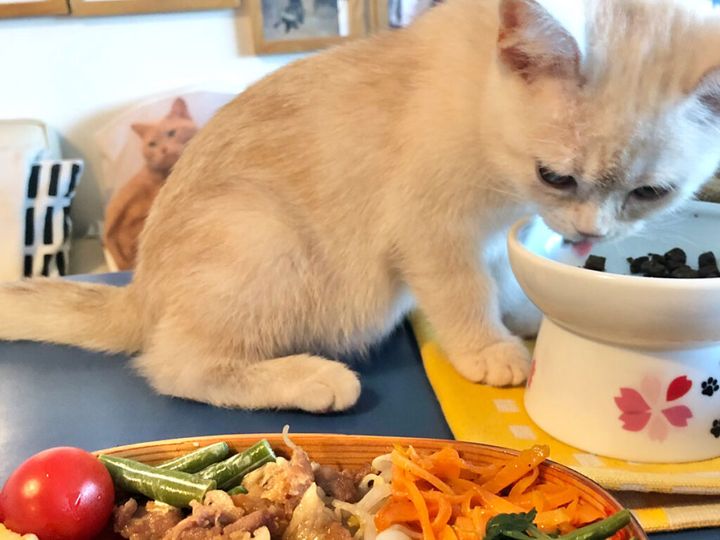 ママをじーーーっと見つめたら、またごはん出てくるかなぁ。視線を送ってみようっと。