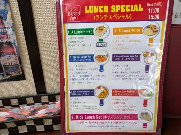 カレーライスセット以外は、プレーンナンが食べ放題!Aセットは750円ですから、今どきこの価格は凄いです♪ 辛さも選べますよ。