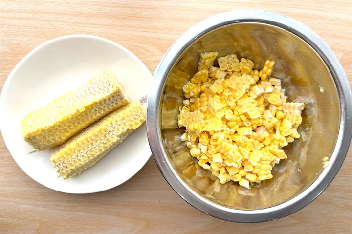 米を浸水させている間に、とうもろこしの下ごしらえをします。