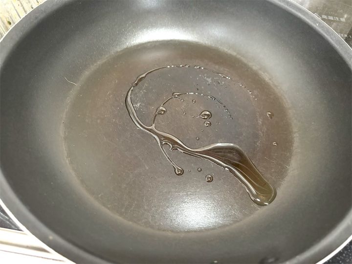 フライパンに油を入れて、中火(IHクッキングヒーターだと160~180℃くらい)にかけます。
