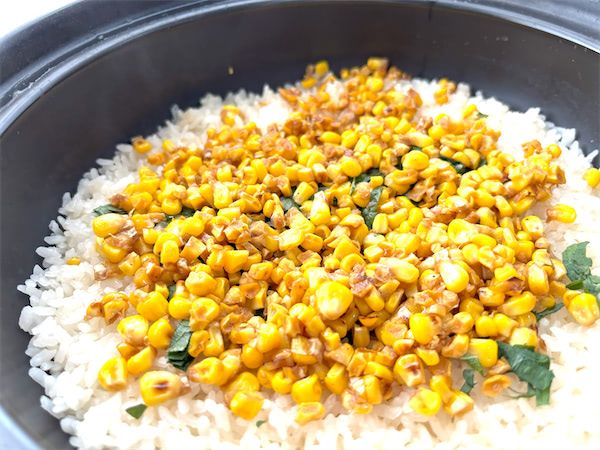 米を浸水している間にとうもろこしの下処理、そして「焼きとうもろこし」作り、そして、米を炊いている間に…と、合間でいろんな作業ができるので、そんなに手間を感じることはありませんでした。
