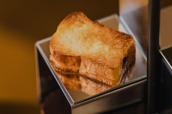 マダガスカル産カカオ45%のショコラ オ・レと東京工房で製造したヘーゼルナッツのプラリネを入れて香ばしくトーストしたブリオッシュ。ル・ショコラ・アラン・デュカスのル・サロンでも人気の定番メニュー。