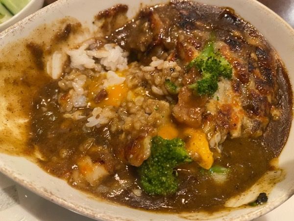 こちらもアツアツのうちに。スプーンで、ゆっくりと発掘していくと中にも、とろ〜り卵が入ってカレーと絡めるとクリーミーな味わい。それからスパイシーが追いかけてくる。後味がピリッとするのもクセになりそう。