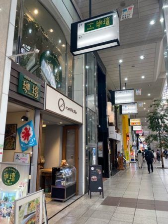 珈壇さんは、大街道入口から、ゆっくり歩いて、約5分。私が学生時代から好きな雑貨などを扱うお店、スペース田中さんを通り過ぎ、そば吉(コチラも1人でよく食べに行ってた)さんの少し手前にお店の看板を見つけました。細長〜い階段を登って、2階へ。