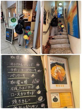 その後も、タウン情報まつやまの喫茶店特集でも目にしたりと…やっぱり紙もの、雑誌が好きな私!笑 そんな経緯から辿り着いた珈壇さん。もちろん私がチョイスしたのは焼きカレー。パパと息子はナポリタン、もちろん!目玉焼きのせを注文。