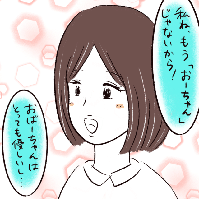 「私ね、もう『おーちゃん』じゃないから!おばーちゃんはとっても優しいし・・・」と話し始めます。