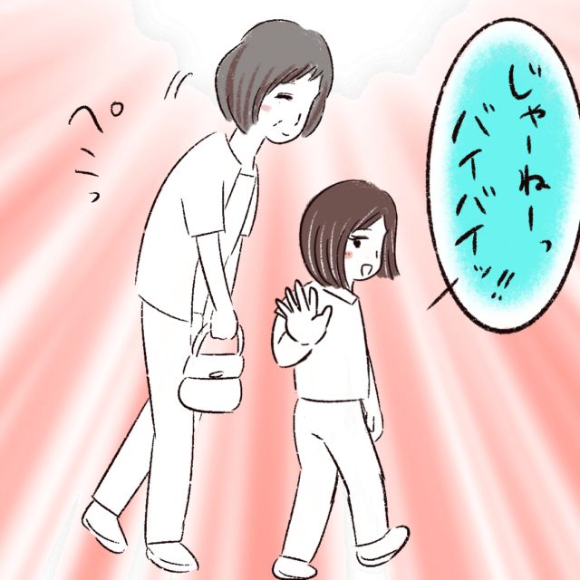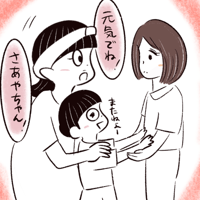 「じゃーねーっバイバイッ!!」さあやちゃんは笑顔で手を振りながらおばあちゃんと帰って行きました。