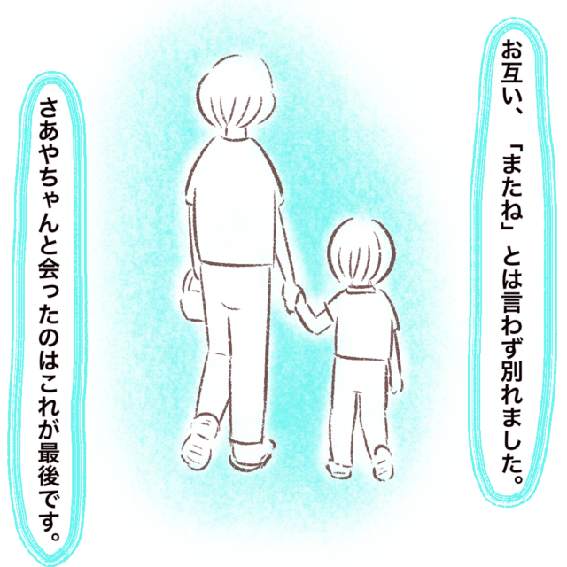 お互いに「またね」とは言わずに別れたまるさんとさあやちゃん。まるさんがさあやちゃんと会ったのはこれが最後でした。